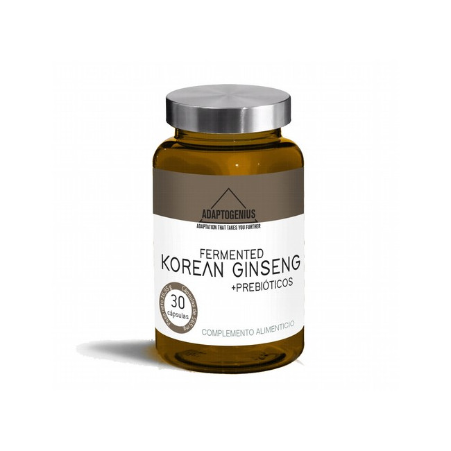 Adaptogenius Ginseng Rojo Coreano está formulado con extracto 100 % de raíz entera de Panax ginseng C.A. Meyer, sometido a un proceso de fermentación biotecnológica que transforma sus ginsenósidos principales (Rg1, Rb1 y Rg3) en metabolitos más pequeños, biodisponibles y altamente activos. Esta biotransformación permite obtener un extracto eficaz a dosis reducida, con efectos sostenidos sobre la energía física y mental, la resistencia al estrés y la capacidad adaptativa del organismo.