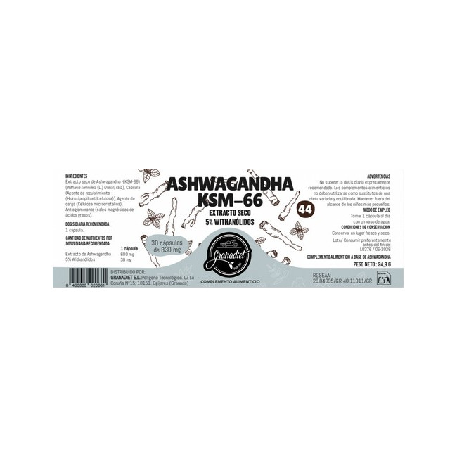 Complemento alimenticio con numerosos beneficios tales como reducción del estrés y ansiedad, mejora de la función cognitiva, mejora de la testosterona y fertilidad masculina, etc...