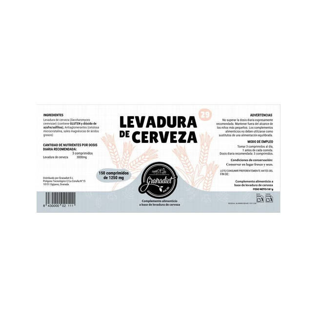 Ingredientes: Levadura de cerveza (Saccha romyces cerevisiae) antiaglomerante, celulosa, endurecedores como estearato de magnesio, antiglomerante,dióxido de silicio.