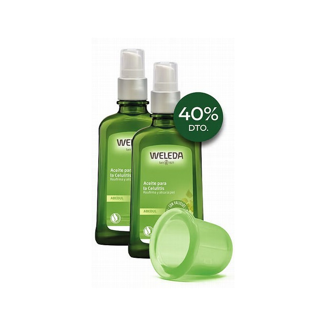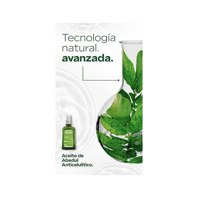 Información del Producto Tratamiento Anticelulítico 100% natural y BIO con aceite de Abedul de Weleda, reconocido como el producto Nº 1 en el mercado durante cinco años consecutivos. Ahora, ¡disfruta de un pack con un 40% de descuento que incluye la Celulicup de regalo para potenciar tu masaje! Dedica solo 5 minutos al día para combatir la celulitis con la Celulicup, la herramienta de Weleda que estimula la circulación sanguínea, disminuye la celulitis, reafirma y mejora la textura de la piel, y ayuda a drenar la retención de líquidos. Este tratamiento proporciona una doble acción: reductora y reafirmante. Mediante un masaje con aceite de Abedul, se activa el metabolismo de la piel y se mejora la circulación, lo que contribuye a reducir la celulitis y la retención de líquidos. Este aceite no solo ayuda a eliminar toxinas, sino que también mejora la textura de la piel. La fórmula avanzada del tratamiento tonifica y reafirma la piel, favoreciendo la producción de colágeno y elastina, esenciales para mantener su firmeza y elasticidad. Al utilizarse en combinación con la Celulicup, se potencia la microcirculación y la absorción de los ingredientes activos, maximizando los beneficios del tratamiento. Como resultado, se logra una piel más suave, flexible y visiblemente tonificada, ofreciendo resultados duraderos con un uso constante. Los resultados del estudio, realizado con un grupo diverso de participantes, demostraron que, en solo 4 semanas, la piel se volvió un 21% más lisa, un 22% más firme y la elasticidad aumentó en un impresionante 35%. Con una metodología rigurosa de medición, se observó un efecto reductor en el contorno del muslo de hasta -3,6 centímetros tras 28 días de uso.