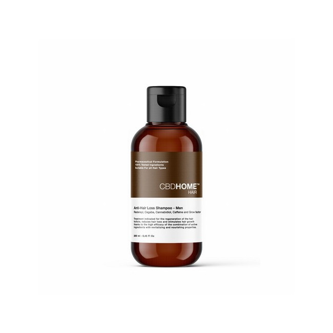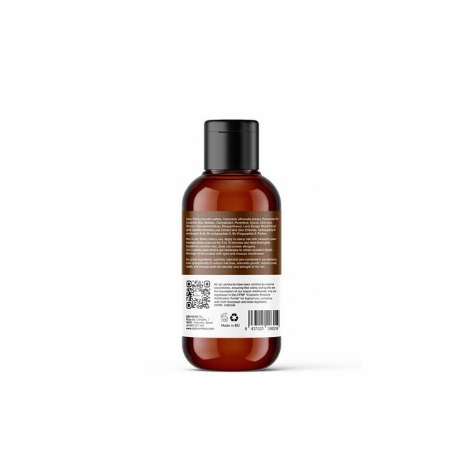 Este Champú Anticaída para Hombre, en formato de 250 ml, es un tratamiento que combina CBD, Redensyl, Cegaba, Cafeína y factores de crecimiento para fortalecer el cabello y prevenir su caída. El CBD cuida el cuero cabelludo, mientras Redensyl y Cegaba estimulan el crecimiento de cabello nuevo. La cafeína mejora la circulación, revitalizando el cabello y aportando más densidad y fuerza. Champú Anticaída Hombre con Cannabidiol (CBD) Redesnyl, Cegaba, Cannabidiol, Cafeina y factores de crecimiento. Apto para todo tipo de cabello 250 mililitros 100% ingredientes naturales testados y certificados por la Unión Europea. Fórmula farmacéutica Producido en España. EAN: 8437025296019