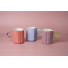 ¡Felicidad! ¡Su nombre lo dice todo! Porque esta hermosa taza nos trae alegría. ¿A ti también? Su vibrante combinación de colores en un atrevido estilo color block despierta alegría, risas y desenfado. La atrevida combinación de colores pastel contrastantes crea un look salvaje y original. Y así, la taza se convierte en una aventura viviente en la mesa de la cocina. Porque una cosa está clara: la vida es tan colorida como te atreves a imaginarla. Y con esta hermosa taza, hemos rebuscado en el cubo de pintura. Verde, morado, azul y rosa: ¡más variedad imposible! Complementada por la emocionante textura de la superficie, que consiste en un hermoso relieve rayado, la singularidad absoluta de esta taza continúa. El look se completa con un moderno asa redonda, que le da un toque extravagante. ¡Alegre, colorida y genial! Con una capacidad media de 0,35 l, esta hermosa taza también ofrece suficiente espacio para ideas creativas. Ya sea una mezcla de té dulce y afrutada o una moderna creación de café, ¡disfruta de lo que te apetezca!