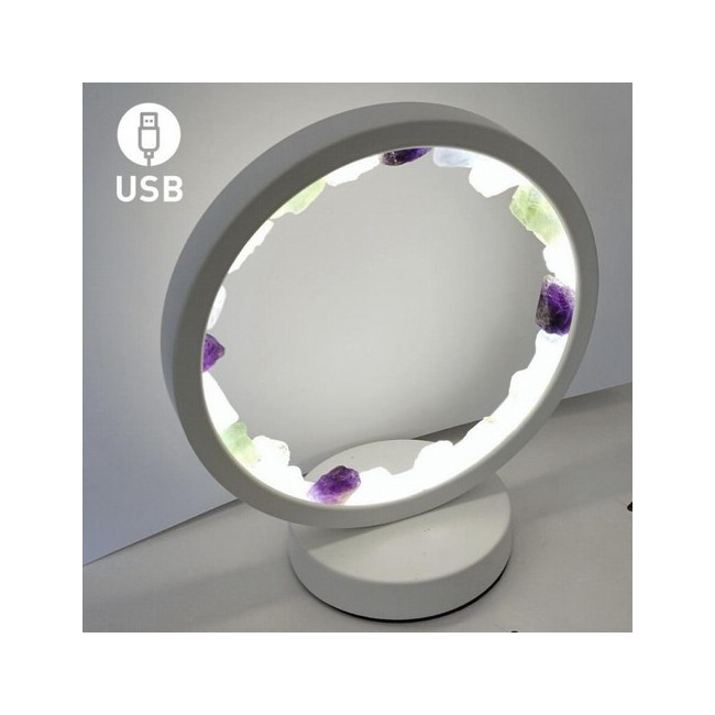 Lámpara de mesa/escritorio redonda de Fluorita en color blanco.