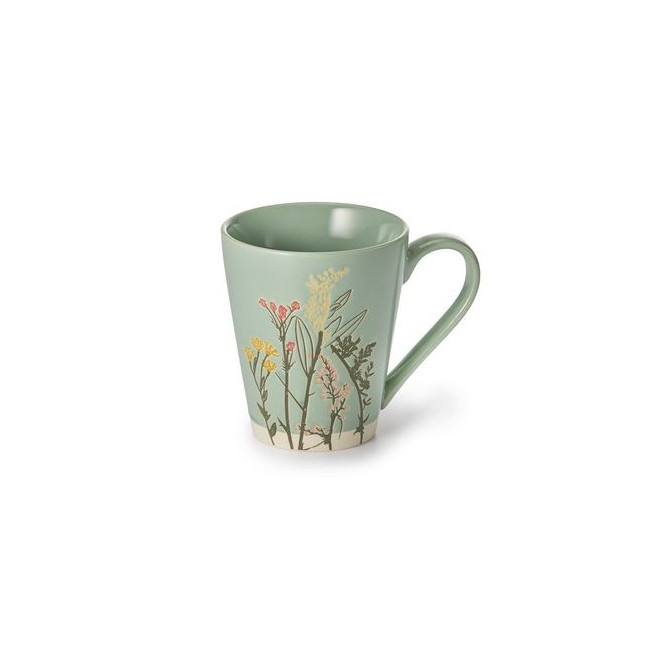 ¡Flores coloridas hasta donde alcanza la vista! Ya sea en amarillo brillante, rosa pálido o rojo intenso, este esplendor floral nos pone de buen humor y nos transporta a un exuberante prado de verano con magníficas flores silvestres. Allí se respira un vibrante bullicio. Además de hermosas mariposas y abejas ocupadas recolectando néctar y polen, adorables saltamontes corretean entre la espesura de las flores: ¡qué delicia! Sobre el exuberante fondo verde, los brillantes colores de las flores brillan en todo su esplendor. En combinación con la base beige en contraste, la taza adquiere un aspecto equilibrado con una energía fresca y natural. La taza de gres impresiona por su forma moderna y su diseño minimalista. Su silueta estilizada y su asa grande la hacen cómoda de sostener. Con una capacidad media de 0,35 l, permite disfrutar de una variedad de bebidas calientes. Ya sea como un elemento llamativo en la estantería de la cocina o para momentos de té acogedores y soñar, ¡esta taza es pura alegría!