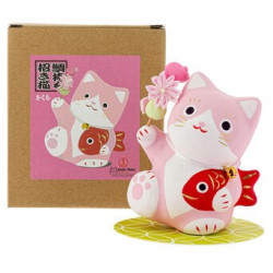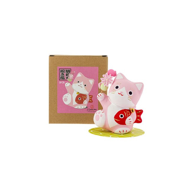 Como dice un refrán japonés, “donde hay una sonrisa, llega la suerte”. Atrae fortuna y prosperidad con este kawaii maneki neko rosa con el poder de la carpa dorada que, como el daruma, simboliza determinación y perseverancia. Dice la leyenda que el premio a las carpas que nadan río arriba superando cascadas es transformarse en dragón.