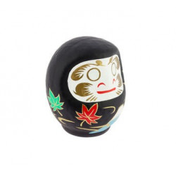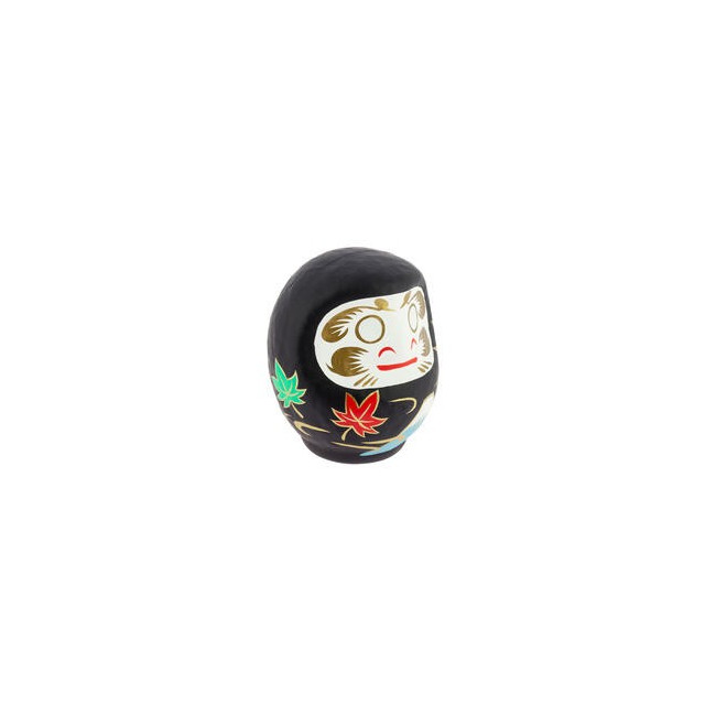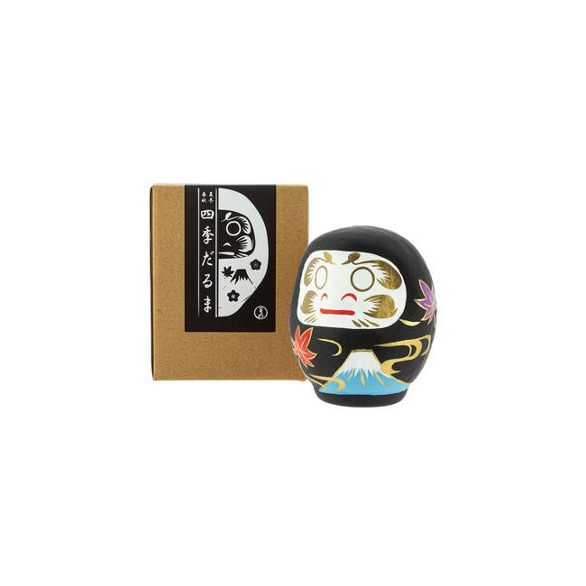 Para los japoneses, tanto daruma como el monte Fuji son símbolos espirituales, budista uno y sintoísta el otro. En esta figurita se reverencia a los dos. Está decorada con hojas de arce rojo arrastradas por el viento, cuya contemplación conocida como momiji se vive en Japón como un ritual de serenidad, un momento de calma interior y de conexión con la naturaleza.