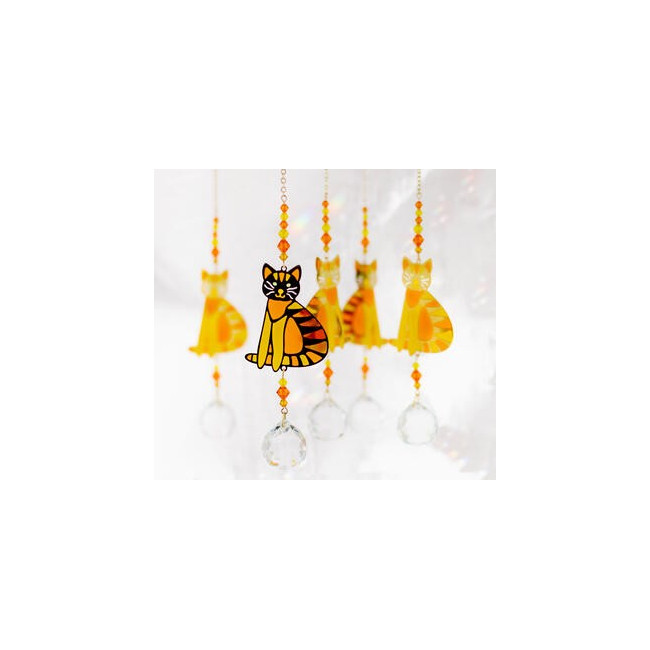 Los cristales Feng Shui están embellecidos con cristal austriaco de calidad. Los alegres colores de la silueta de metal presentan transparencias que recuerda los vitrales de las catedrales. Estos maravillosos elementos decorativos llenarán tu espacio de vida, luz y alegría. Detalles del producto Características:Embellecido con cristal austriaco de calidad. Altura total 19,5 cm. Bola Ø 2 cm. Silueta vitral de acero inoxidable con baño dorado y resina. Cadena de metal. Se sirve en una caja de regalo con una ventosa. Color principal:Naranja Made in:Reino Unido