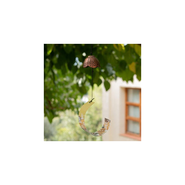 Armonía y belleza para tu espacio con esta campanita de hierro colado, inspirada en una flor y esmaltada en color cobre.