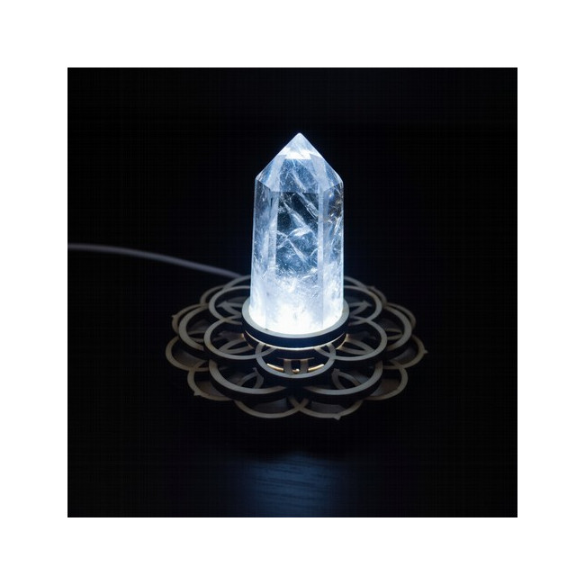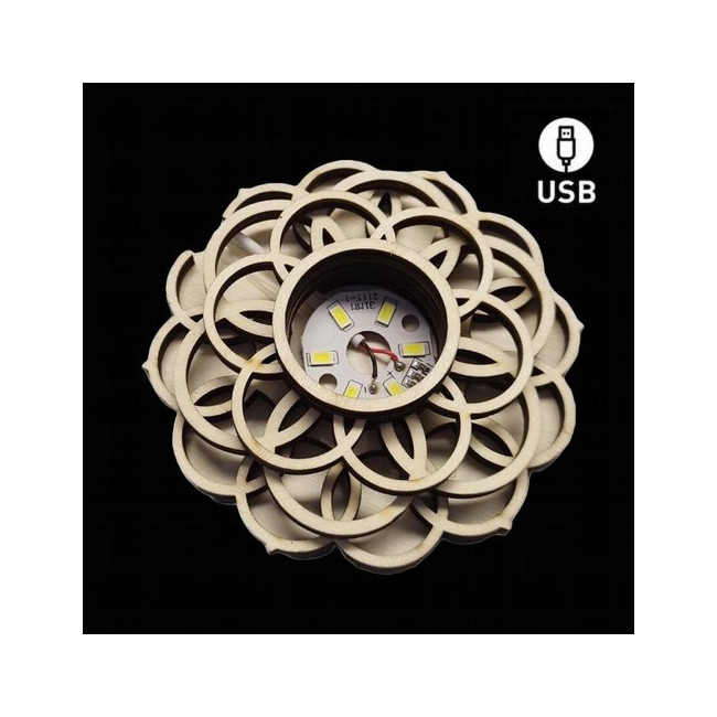 Base de Madera 6 Led Blanca USB con el símbolo de la Flor de la Vida.