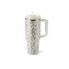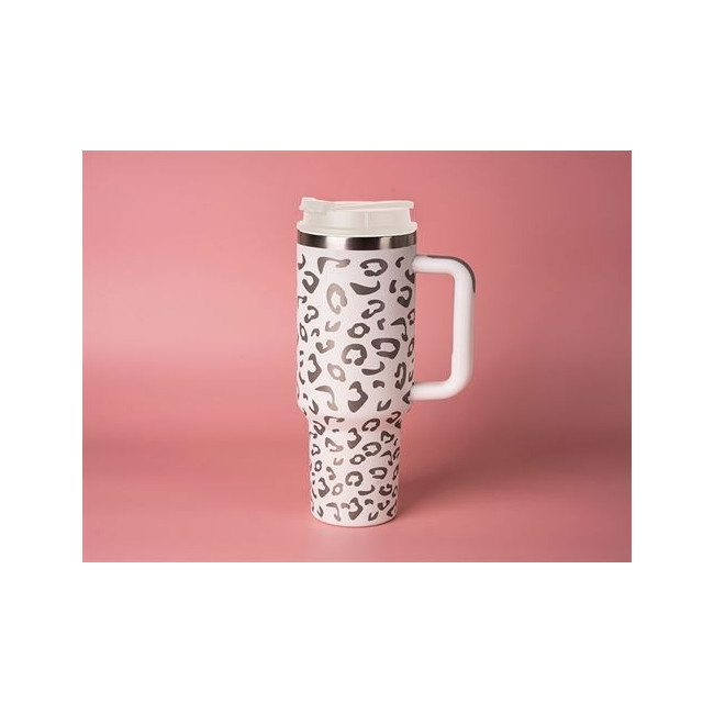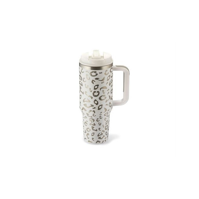 ¡Experimenta el lado salvaje de la vida! Con su elegante estampado de leopardo en plata brillante, esta taza XXL para llevar es toda una declaración de estilo. Su diseño moderno y sofisticado refleja a la perfección un estilo de vida fresco y urbano. Ya sea en la ciudad, en la oficina o de camino a tu próxima aventura, destaca su gran capacidad de 1,1 l, que ofrece suficiente espacio para tu bebida favorita, ideal para excursiones, senderismo o actividades deportivas. Gracias a su forma bien pensada, con una silueta más delgada en la base, cabe cómodamente en los portavasos estándar de los coches: ¡simplemente práctico! Además, sus dos aberturas para beber permiten un uso flexible según tus necesidades. Disfruta de tu café directamente del pequeño orificio de la tapa o usa la pajita integrada para refrescarte con bebidas frías. Su construcción de acero inoxidable de doble pared garantiza un aislamiento óptimo, para que tus bebidas se mantengan calientes o frías durante mucho tiempo. ¡Modernidad, comodidad y calidad en un solo producto hacen de nuestra hermosa taza para llevar la compañera perfecta para el día a día!.
