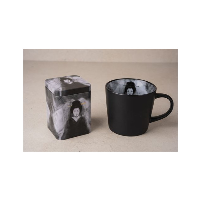 El término "geisha" se traduce como "persona con talento artístico". Por ello, en Japón y China, las geishas son consideradas maestras de la conversación, la danza, la poesía y la música. Suelen encontrarse en casas de té, donde inspiran a su público con encantadoras y encantadoras representaciones. Como guardianas de antiguas tradiciones, también son símbolos de cultura, gracia y elegancia. Sus magníficos kimonos, sus suntuosos adornos para el cabello y sus rostros pintados de blanco les confieren gracia y clase. Con su diseño minimalista y su sobria paleta de colores en blanco y negro, nuestra hermosa taza New Bone China ofrece una interpretación sofisticada y alternativa de estas figuras maestras del arte. El diseño se centra menos en la opulencia y más en la belleza atemporal y el valor de las geishas. El fondo muestra un dibujo abstracto de brazos abiertos, un gesto acogedor y a la vez protector que refleja las virtudes típicas de las geishas, ??como la hospitalidad y la capacidad de guardar secretos. Esta encantadora taza tiene una capacidad de 0,45 l y es ideal para disfrutar de diversas especialidades de café o té. Con un llamativo diseño invertido, esta pieza adquiere un toque fascinante que va más allá del diseño. Esto se debe a que la decoración se encuentra en el interior de una de las tazas de esta gama, lo que aporta variedad a la estantería de tazas de tu hogar.