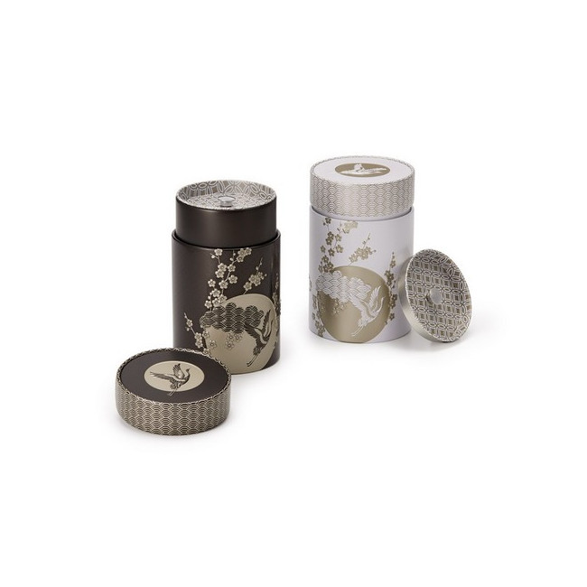 Esta lata elaboradamente decorada convence por su cuidado diseño. Con elementos decorativos tradicionales del lejano oriente, como la grulla y las flores de cerezo, esta decoración nos transporta al mundo asiático. Pequeños detalles como el relieve 3D y las decoraciones metálicas completan la estética perfecta. La tapa interior a juego protege aún más el sabor.